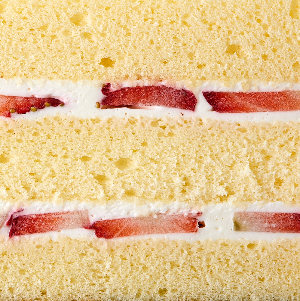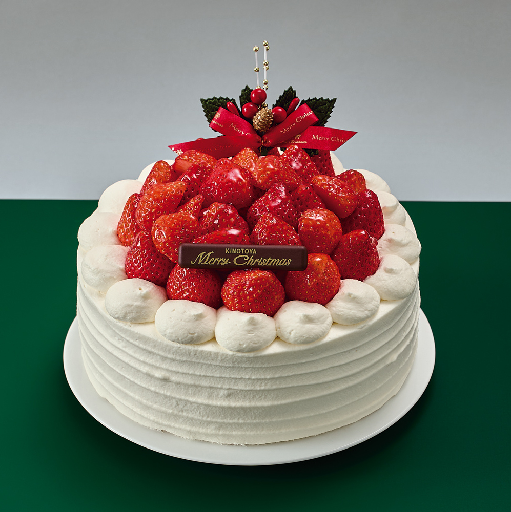 雪のように真っ白な生クリームケーキの上にみずみずしいイチゴを贅沢に飾りつけました。