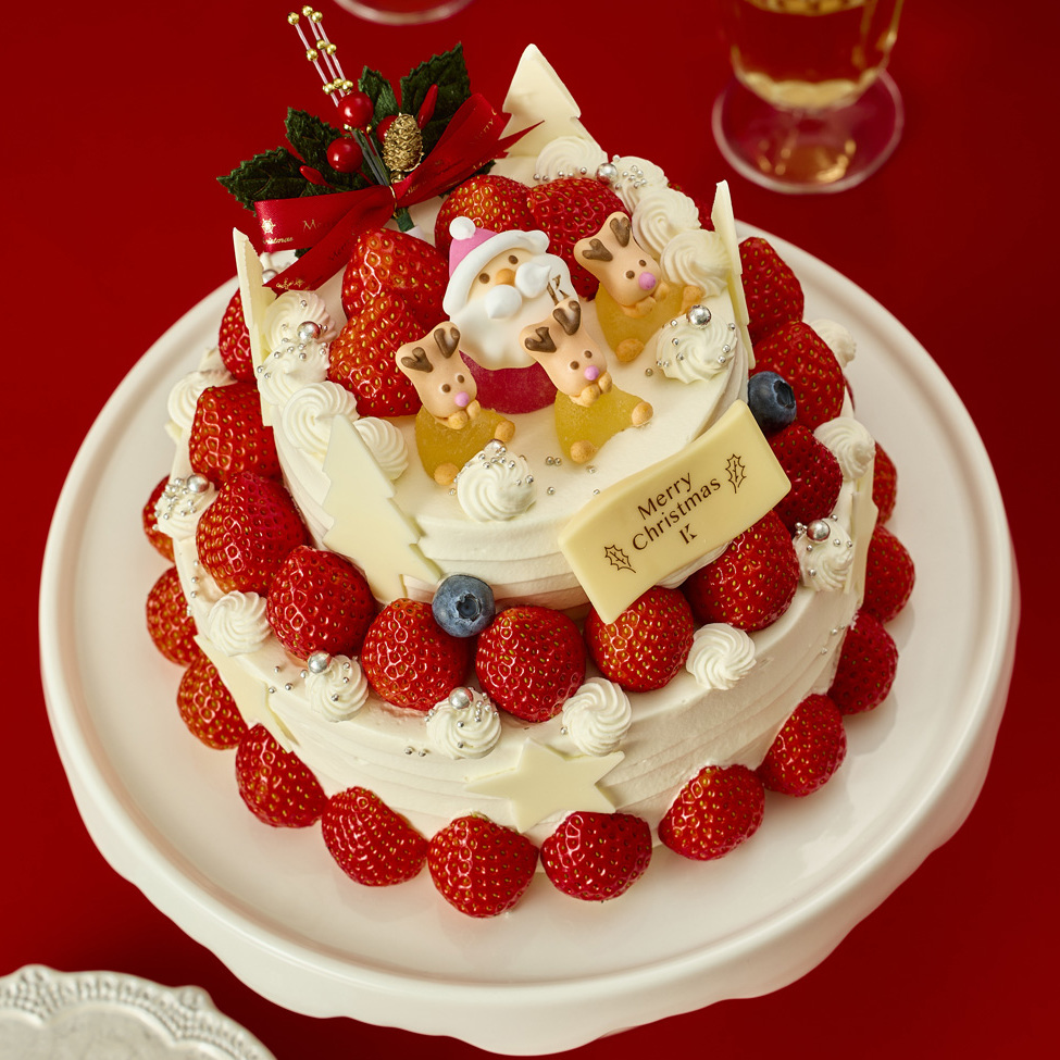 子どもから大人まで、クリスマスのお祝いに笑顔が溢れる、華やかな2段ケーキです。