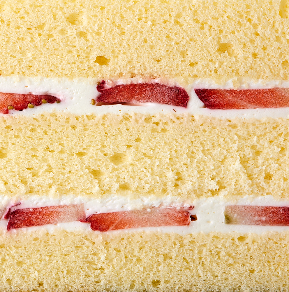 ふわふわなスポンジにフレッシュな生クリーム、いちご、2種のぶどう、ピーチ、