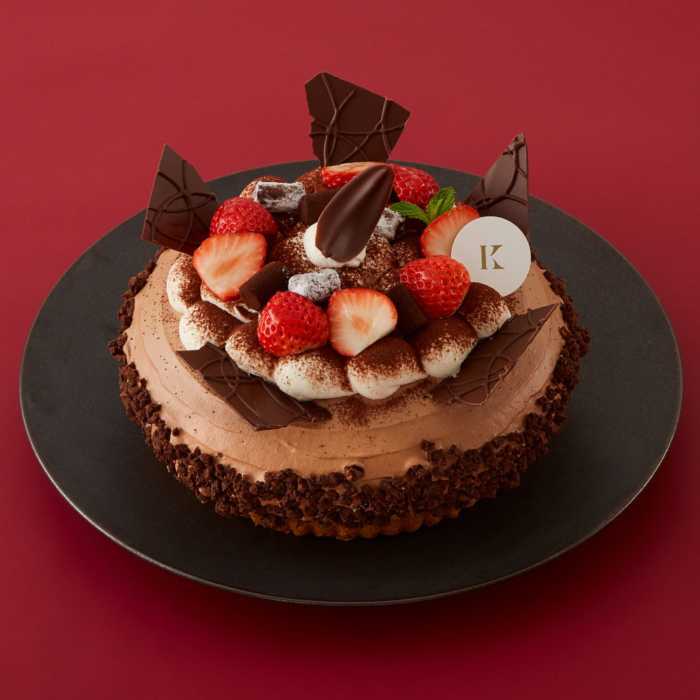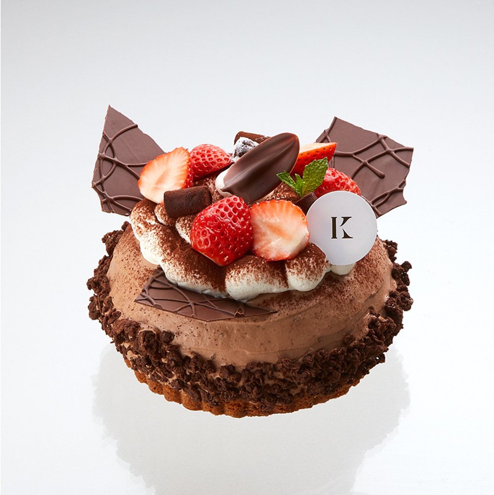 サクッとしたチョコクロッカンをアクセントに、とろける生チョコレートと生クリーム、イチゴで飾りました。